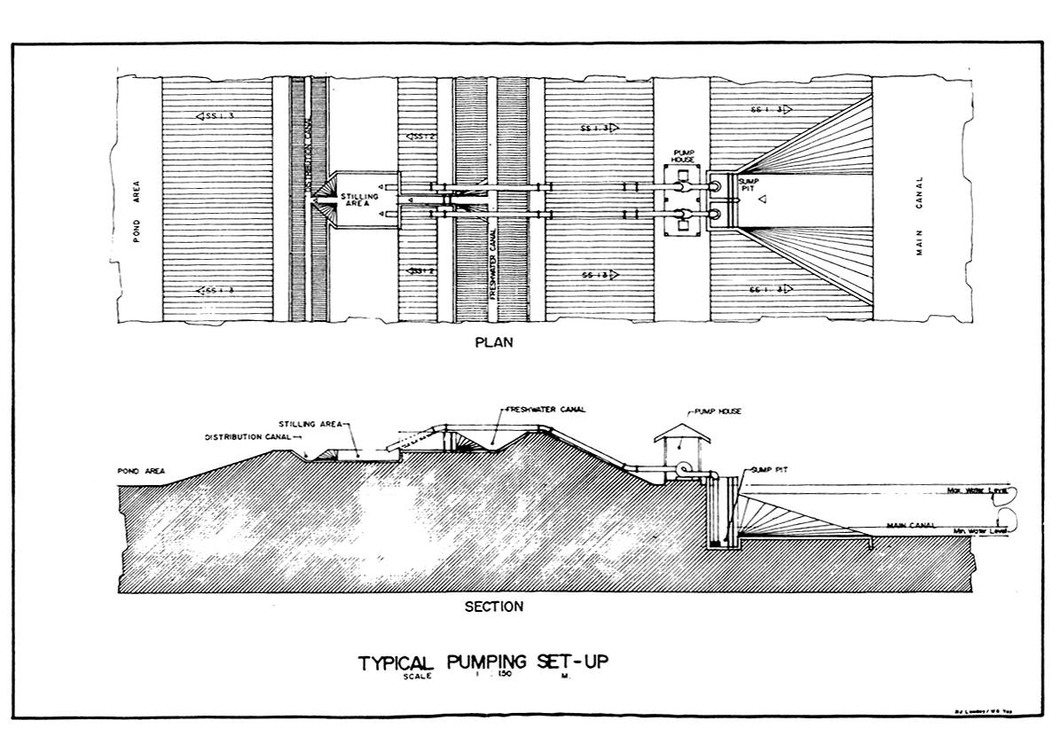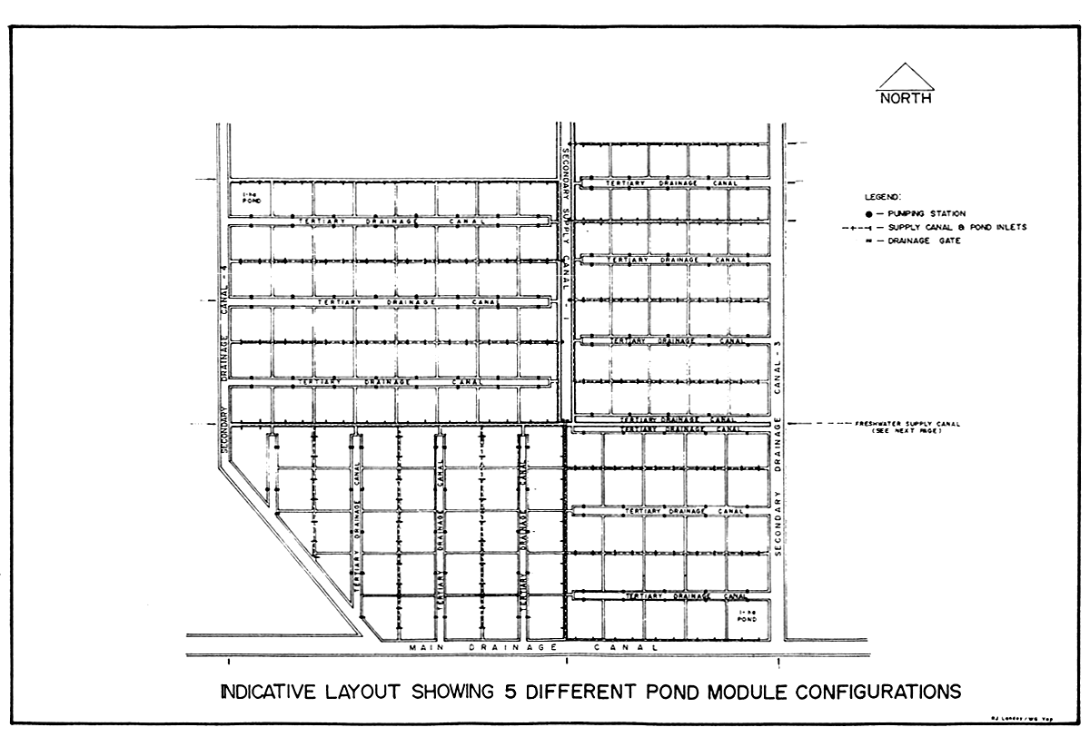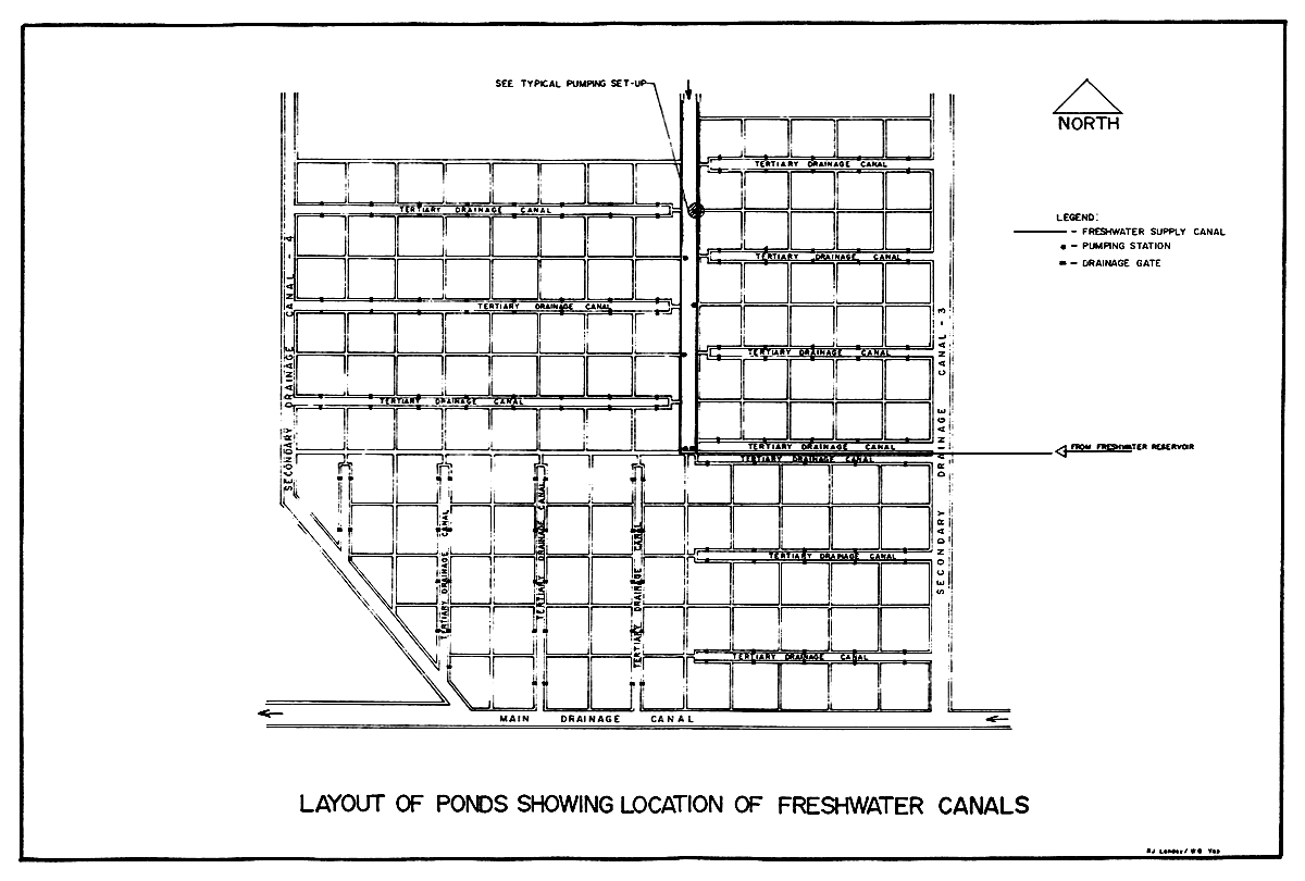 Layout of Ponds Showing Location of Freshwater Canals.