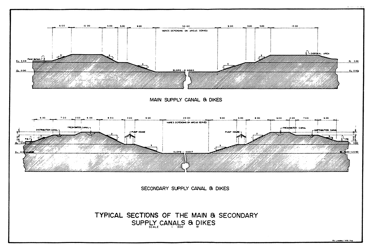 Typical Sections of the Main and Secondary Supply Canals and Dikes.