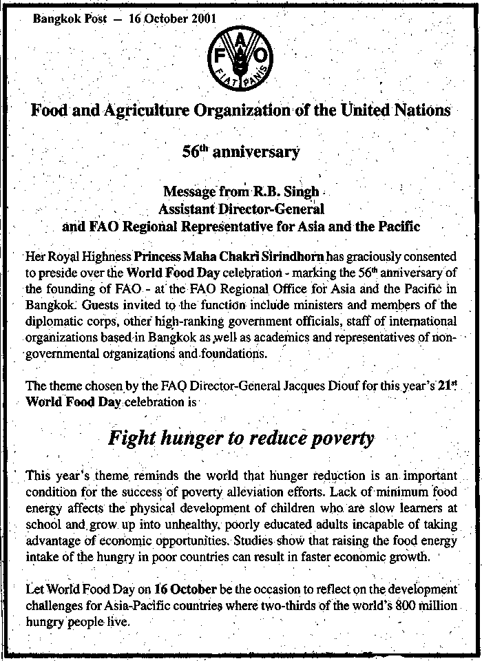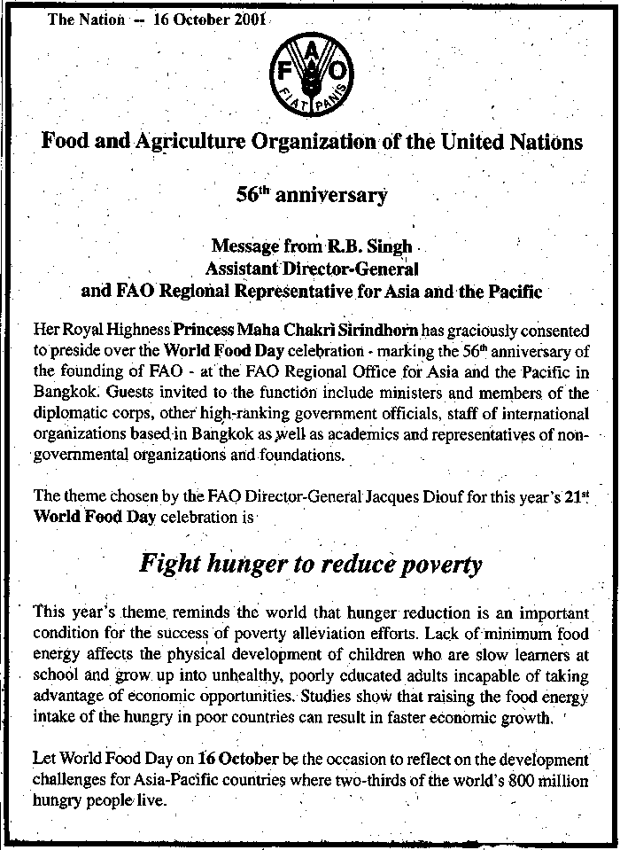25/Oct/2001 THAILAND: THAILAND'S EFFORTS IN FIGHTING HUNGER TO REDUCE POVERTY.