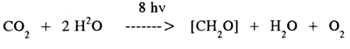 Light captured by the pigments in the thylakoid membranes of the choroplasts is converted into chemical energy through the photosystems and electron transport chains as shown in Figure 1. This chemical energy (NADPH and ATP) is then utilized in the Photosynthetic Carbon Reduction Cycle to convert CO2 to carbohydrate. In the synthesis of glucose from carbon dioxide, with the evolution of 6 molecules of oxygen, 48 light quanta must be used.