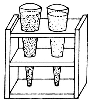 Turbidity caused by settleable organic matter can also be obtained by using the Imhoff cone (Fig. 8.5.), where the sampled water is left to settle (Boyd, 1979). Settleable solids have been defined as the volume or weight (preferably dry) of solid material which will settle in one hour to the bottom of an Imhoff cone containing a measured volume of water (EIFAC, 1986).