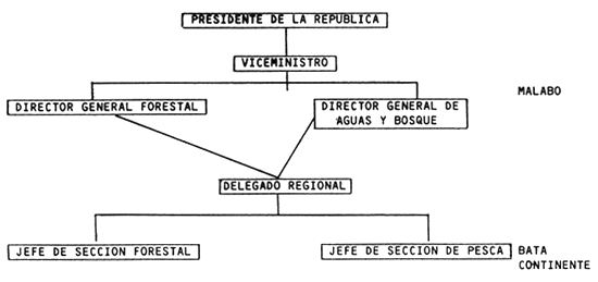La responsabilidad de pesca marina asi como las de las aguas continentales corresponde al Ministerio de Aguas, Bosques y Repoblación Forestal, éste es relativamente nuevo, funciona a partir de febrero de 1984, depende directamente del Presidente de la República, y está supervisada por un Viceministro (actualmente no hay ministro nombrado, y su organización y funciones han sido aprobados totalmente).
