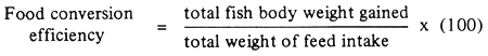 Table 3.8. Food conversion ratio (FCRs) of several common feeds for various species of fish.