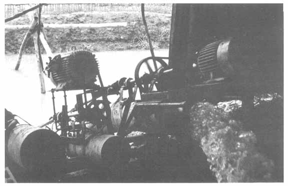 Continuous water intake is essential. In this large farm, two alternative electric pumps are backed up by a third (left) which is powered by a diesel engine (out of sight).