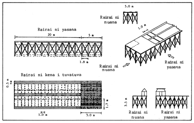 Dua na vakasama ni ena loma ni 100 sq m (20 m × 5 m) na lawalawa “sarlon”, e sa na rawa ni vakamamacataki kina e 80 na laini lumi ena dua na gauna.