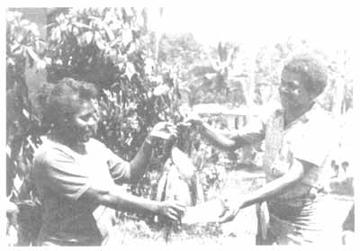 Raising fish is a good way to earn money and to provide body building food (protein) for you and your village. An individual, a mataqali, a village or a school can own a pond and raise fish. The Fisheries Department will help you look for a good place to dig a pond and will teach you how to raise fish. It does not take much money to start raising fish. When you harvest your pond for the first time, you should be able to sell the fish for more money than you spent to start the pond. ![]() NA SUSU IKA E DUA NA SALA NI RAWA I LAVO VINAKA. KEVAKA 'O VAKAYAGATAKA E $50 E NA KEDRA KAKANA, E NA RAWA NI 'O NA RAWATA E $200 MAI NA VOLITAKI NI IKA. E SEGA TALEGA NI LEVU NA I LAVO 'O GADREVA MO NA TAUYAVU KINA. RAISING FISH IS A GOOD WAY TO EARN MONEY. IF YOU SPEND $50 ON FEED, YOU CAN RAISE $200 OF FISH. IT DOES NOT COST MUCH MONEY TO START, EITHER. It takes some hard work to dig a fish pond, but after this is done, little work is needed to raise fish. You must buy feed and give some to the fish twice each day. But the feed is not expensive and feeding the fish is an easy job. Men, women and children can all help to raise the fish. Everyone can help feed the fish and catch the fish when they are harvested. After six months, the fish are mature, so you drain the pond and catch all of the fish. One pond can hold 200 to 800 fish (depending upon the size of the pond), so you will have plenty of fish to eat and sell. You can sell all your fish at your village or nearby, so no middleman or transport to town is needed. Raising fish is a very good business. For example, a farmer in Namosi raised over 80 kilograms of fish in one pond in 6 months. He spent $70 on feed and sold the fish for $250. You may not be able to do quite this well, but if you take good care of your fish, you should be able to help yourself and your village with the fish you raise and the money you earn. If you are interested in raising fish, read the first six pages of this book, look for a good place to dig a pond, and contact the Fisheries Department office in your area or call Naduruloulou at ph: 47781. DO NOT START ANY WORK UNTIL SOMEONE FROM THE FISHERIES DEPARTMENT MEETS WITH YOU. ![]() WHAT TYPE OF FISH IS RAISED? The best type of fish to raise is Maleya (in other countries it is called Tilapia). The type raised in the fish ponds is similar to the type found in the rivers of Fiji, but it is lighter coloured and faster growing. Maleya originally came from Africa. Maleya are the best type of fish to raise because they taste good, grow quickly, and are easy to take care of. They eat wheat pollard and other feeds. They must eat a small amount of feed twice each day because they have small stomaches. The fish will reach a good size (5 fish in one kilogram) in six months if they eat well. After six months they are mature and grow very slowly. Therefore, you must harvest all the fish then start over. The Fisheries Department may be able to give you the young fish to start your pond for no cost. Your pond must be ready and you must buy feed before you can get any fish. Later, you will be able to save some young fish when you harvest to put back in your pond to restart. WHAT DOES A GOOD POND LOOK LIKE? A good fish pond is dug in a flat area near running water. Water is brought from a small stream or spring by an inlet (a ditch, pipe or bamboo) to the pond. Once the pond is full, the water flowing into the pond is shut off. When you want to harvest the fish, you drain all the water out of the pond. |