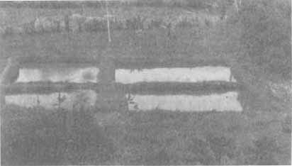 A POND TO HOLD YOUNG FISH If you plan to use the young fish from your pond to start again, you will need to dig a small pond to keep these young fish in while you dry out your big pond. This pond will not need to be large because it will only hold small fish for a few weeks. It should be about two meters wide, two metres long, and two feet deep. It must be able to fill and drain completely, but it does not need a drain pipe. One small pond like this can be used for several large ponds where the fish are raised. It can be dug next to a large pond or anywhere nearby. ![]() |