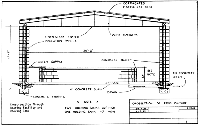In the United States frog culture is primarily limited to outdoor facilities, mainly ponds, in which success has been minimal (Priddy and Culley, 1971). The market for pond-reared frogs is restricted to breeding stock. The inability to control disease and predators, provide sufficient food, and prevent cannibalism, contribute to the failure of outdoor pond-rearing on a commercial scale. Further investigation in pond-rearing is obsolete in that ambient control is necessary in all phases of amphibian culture (Priddy and Culley, 1971).
