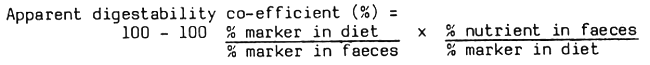 The dried faeces from the oven will be weighed and ground in a mortar. The chromic oxide content of the faeces and of the diets will be determined by using the wet-acid oxidation method. Crude protein both in diet and faeces will be measured by the Kjeldahl method. Apparent digestability co-efficients will be calculated by using the formula of Maynard & Loosli (1956) employing chromic oxide as the dietary marker and dietary component (protein, carbohydrate, fat) as nutrient:
