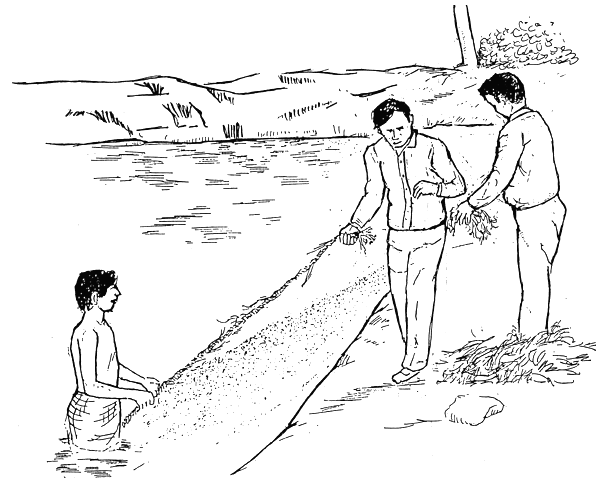 Put barbed wire/branches of trees/bamboos etc. along the pond margin to prevent poaching.