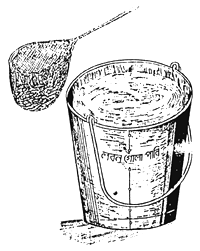 Take 200 g of common salt in a bucket (10 lit capacity) and mix well till it dissolves. A piece of cloth or fine mesh net piece is placed in its central portion dipped in the salt water. Put the fry/fingerling in the cloth/net to have a dip for 30–40 seconds and lift with the net and release in the fresh water.