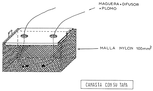la(s) tina(s) reservorio(s) y las mangueras de alimentación de las tinas de aclimatación (se necesita una sola tina si la diferencia de salinidad entre el Laboratorio y la Finca es baja, pero 2 si la diferencia es alta, importante, la segunda sirviendo para agua de mar a salinidad del Laboratorio),