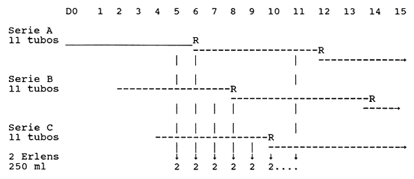 Tubos de 15 y 30 ml. Erlens de 100 ml sin aeración.