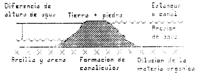 Entonces hay que hacer una aislacion del muro de tierra con arcilla. Hay que aprovechar el fondo de tierra de los estanques, cuidandose de no bajar el nivel del fondo mas abajo que el nivel de la esclusa de salida.
