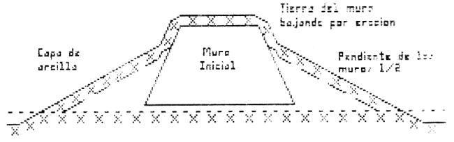 Al fin el riesgo es de perder un muro entero o parte del muro si la masa de agua bajo el muro es elevada, provocando un corrimiento de la masa del muro (tierra) sobre el suelo impermeable (arcilla).
