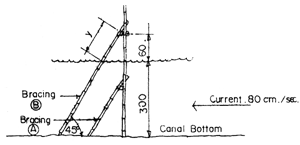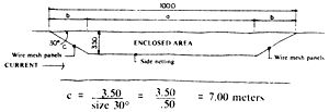 Giving due regard to this phenomenon, a modified design was constructed with provision for free passage of potential foulers and general flotsam that may be discharged in the irrigation canal. In addition, considerations were also given to maintenance work, especially the cleaning of fouled wire and mesh nettings used to enclose the cultured stock.