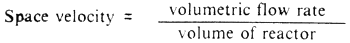 The reciprocal of the space velocity has been given several names such as space time, residence time or contact time. The applicability of this quantity in gaseous reactors, however, is meaningless since most gaseous reactions involve changes in total gas volume as these pass through the reactor. For reactors involving reactions where there is no significant change in the total volume of the reactants and the products, the space time can be made an important characteristic of the reactor.