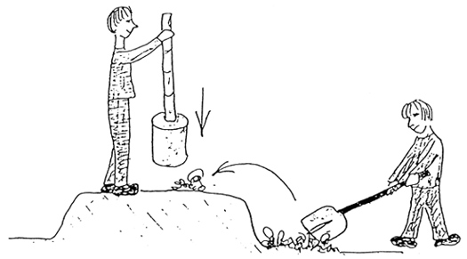 The completed dikes should be planted with grass or covered with sods; as a covered dike is better protected against the erosion which could be caused by heavy rains.