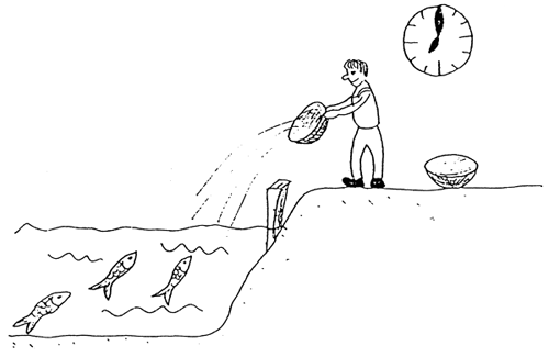 Feed should be given once or twice a day, in the morning between 06.00 and 07.00 h, and in the afternoon. The feeding place should be marked with a peg. The feed should be thrown into the water every day at the same time at the feeding place.