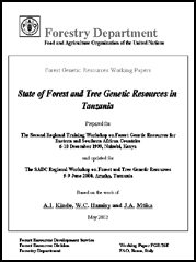 Kindo, A.I., Hamisy W.C. & Mtika J.A. 2002. State of Forest and Tree Genetic Resources in Tanzania. Prepared for the Second Regional Training Workshop on Forest Genetic Resources for Eastern and Southern African Countries, 6-10 December 1999, Nairobi, Kenya, and updated for the SADC Regional Workshop on forest and tree genetic resources, 5-9 June 2000, Arusha, Tanzania. Forest Genetic Resources Working Papers, Working Paper FGR/26E. Forest Resources Development Service, Forest Resources Division. FAO, Rome (unpublished).