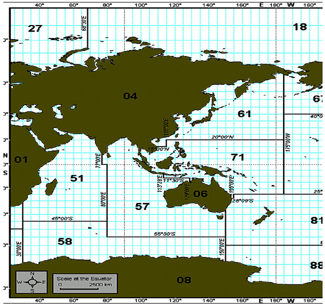 Figure 1. FAO statistical area: Eastern Indian Ocean (area-57) and Western Central Pacific (area-71)