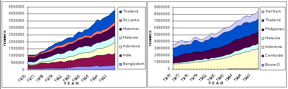 Developing countries in South and Southeast Asia border the two main oceans, the Eastern Indian Ocean (FAO statistical area-57, see Figure 1) with three countries in South Asia, India, Bangladesh and Sri Lanka, and four countries in Southeast Asia, Myanmar, Thailand, Malaysia and Indonesia. The developing countries in Southeast Asia, Cambodia, Indonesia, Malaysia, the Philippines, Thailand and Viet Nam, border the Western Central Pacific Ocean (FAO statistical area-71).