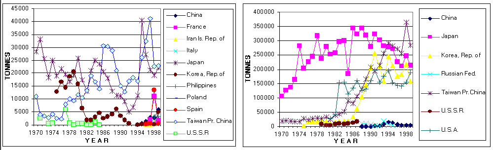 FAO, 2001: FAO/FISHSTAT database at the FAO website <http://www.fao.org/fi/statist/FISOFT/FISHPLUS.asp>