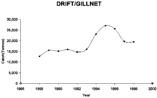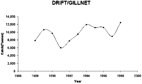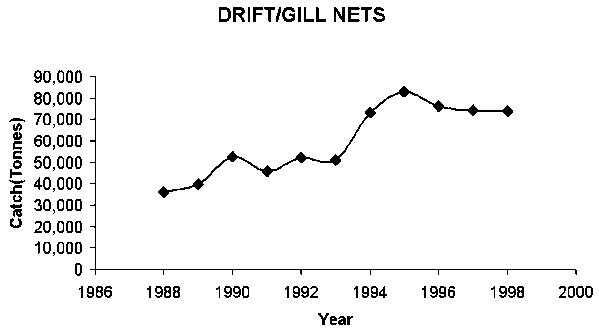 The number of people employed in the fisheries sector has increased in recent years. From 1990 to 2000, this number increased by 99.5 percent, from 270 587 to 540 000, with an average annual increase of 7.2 percent.