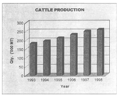 Cattle. Despite the financial crisis in 1997, cattle inventory steadily increased in 1998. However, population growth somewhat slackened, from 6.5 percent in 1997 to 4.9 percent. Due to the increase in cattle inventory, production likewise increased from 232 340 tonnes in 1996 to 260 810 tonnes in 1998. Growth in production, however, shrank to almost a third of its original figure, from 9.04 percent in 1996 to 3.71 percent in 1998.