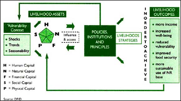 The promotion of sustainable livelihoods focused information does, however, present a number of challenges. Livelihood capital (human, natural, financial, social and physical; see above) can obviously vary according to circumstances. Some communities might, for example, have substantial financial capital (money), others less so but have more natural capital (natural resource assets, e.g. wetlands). It is obviously the combination of these assets that underpins livelihoods. However, it is quite legitimate to exchange different kinds of capital assets, provided the overall outcome is improved livelihoods.