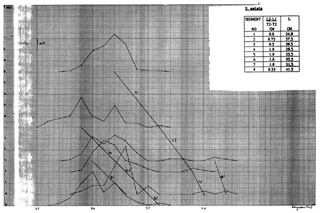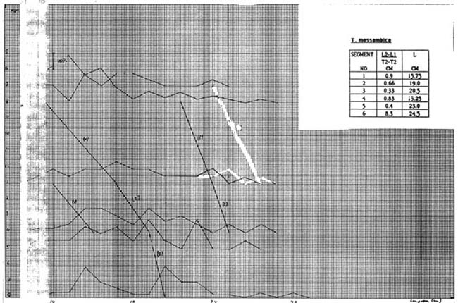 Lorsqu'on ne peut pas tracer des courbes de croissance continues (comme aux figures 5, 6 et 7) ou lorsque qu'on ne dispose que de données marquages-recaptures, il n'est pas possible de leur appliquer la méthode de Ford Walford. Dans de tels cas, la “méthode graphique de Gulland et Holt” peut être d'un grand secours: elle donne des estimations de L∞ et K à partir du fait que: