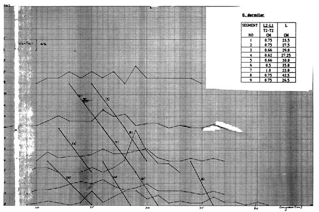 On trouvera au tableau 4 et à la figure 8 un exemple de données de ce type qui sont caractéristiques des études de marquage. La méthode s'applique également aux données “taille par âge”, que l'on ait des intervalles de temps constants ou variables, pourvu que les valeurs de (t2 - t1) restent faibles par rapport à la longévité du poisson (Gulland et Holt 1959).