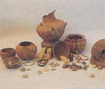 ![]() Pot with a spout: Dvaravati period, Chaibadarn village, Lop Buri | ![]() Beads: Dvaravati period, Puek Ree village, Lop Buri |