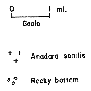 No monthly determination of oxygen content was made at Okrika and the Andoni Flats. On four occasions when both areas were visited, the oxygen content during low and high tides was between 6.05 and 3.62 cm3 per litre. The oxygen content of the three Ghanaian lagoons where A. senilis was found was about 6.5 cm3 per litre during the rains but fell to between 3.54 and 3.1 cm3 per litre in March at the peak of the dry season.