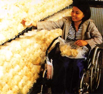 Working with the Department of Welfare of the Government of Thailand, the regional office has trained more than 50 farmers with disabilities in northeast Thailand to start and run mushroom enterprises. The farmers were honoured with an FAO certificate of achievement presented by HRH Princess Maha Chakri Sirindhorn of Thailand during the October 2001 World Food Day celebration at the regional office in Bangkok.
