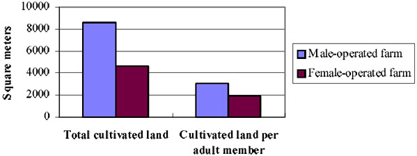 Female-operated farms not only cultivate less land area than male-operated farms; they also cultivate less land per adult household member (61 percent of the per-adult land area of male-operated farms). While some of the difference in land area cultivated may be explained by differences in adult labour resources available in the household, this discrepancy in access to land per household member is unexplained. Limited access to agricultural land implies less diversified economic activities in agriculture, with important negative consequences for food security and agricultural development.