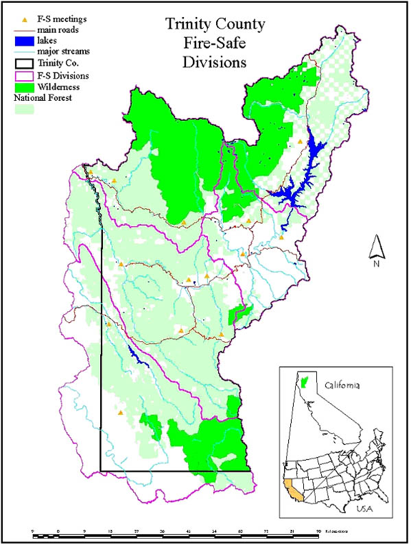 Figure 1: Map of Trinity County, California Fire Safe Divisions