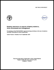 FAO/RAP, 2002. Building Awareness in Aspects of Fishery Statistics, Stock Assessment and Management: Proceedings of the "Regional Training Workshop on the Use of Statistics and Other Information for Stock Assessment". FAO Regional Office for Asia and the Pacific, Bangkok, Thailand. RAP Publication 2002/27, 96 pp. ABSTRACT The document includes a brief account of the fishery statistics programme undertaken by the FAO Fishery Information, Data and Statistics Unit (FIDI). Catch statistics from the FAO database are provided for each country along with comments relevant to the quality of the statistics. Fish stock assessment initiatives in the region are briefly reviewed. This is followed by an introduction to spreadsheet applications of the Thompson and Bell's approach to assessing fishery performance. This methodology was demonstrated and used by the participants during the workshop. There is also an introduction to the use of trophic models such as Ecopath, Ecosim and Ecospace as applied in the aquatic ecosystem of the southwest coast of India. Issues concerning fishery management were also discussed. These include a brief review on marine fisheries management in the region, and suggested approaches to achieving better linkages between research and management. The latter include formalising the linkages through legally empowered fisheries management plans, and fishing community/industry/government co-financing of fisheries research and management. |