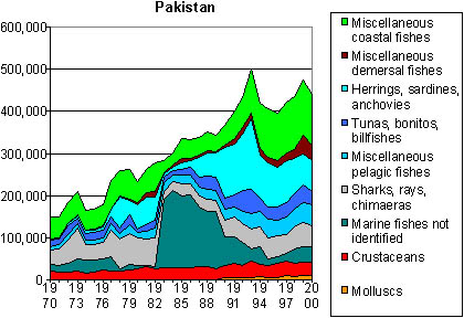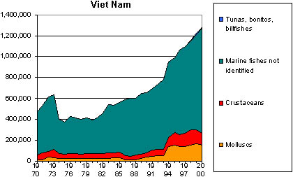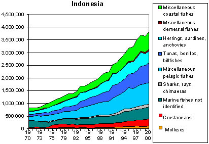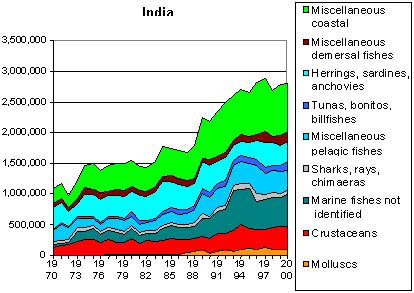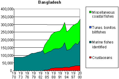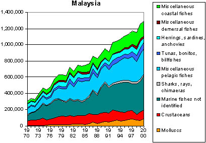 An analysis of the capture fishery statistics of the Asian countries as a whole, showed that catches have tripled in the last 30 years (from 5.5 million tons in 1970 to 15.7 million tons in 2000) with an average yearly rate increase of 3.5 percent. However, several countries report fishery statistics with no or very low breakdown by species. These statistical data do not provide usable information for the purposes of fishery management or assessment of marine resources.