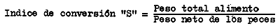 Cada vez que se examinaron los comederos en los corrales 5 y 6, se comprobó que los peces consumieron la totalidad del alimento, dejando únicamente algunos restos de pulpa. También se observó que el alimento al ponerse en contacto con el agua se hidrataba rápidamente y se desmoronaba transformándose en una masa uniforme. Los datos sobre conversión están relacionados con los obtenidos en el análisis del contenido estomacal de tres peces con tamaño diferente, escogidos del corral 6. El análisis se hizo con el objeto de observar la posible transformación de la pulpa en el alimento preparado.