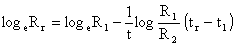 où R1, R2 sont les recaptures dans les ler et 2ème intervalles (rang 0 et 1). Une régression de loge Rr en fonction du rang des intervalles a donc pour pente