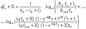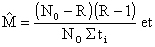qui est l'équivalent du taux d'exploitation de Ricker quand T = 1.R est le nombre total de recaptures obtenues pendant l'expérience de durée T.