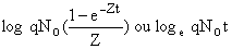 Si les logarithmes népériens des recaptures sont portés en fonction du rang de l'intervalle où elles ont été obtenues, le premier étant numéroté zero1 on obtient une droite de pente (-Zt) et d'ordonnée à l'origine égale à