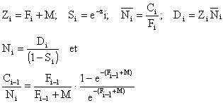 En particulier, si F et M sont constants, le taux de survie peut être donné par le rapport des recaptures dans deux intervalles successifs