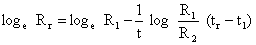 donde R1 y R2 son las recapturas en el primer y segundo intervalo de tiempo (rango 0 y 1). Una regresión de loge Rr en función del rango de los intervalos tiene pues por pendiente