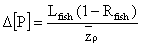 Δ [P] está en relación con las aportaciones de P procedentes de los recintos de peces (Lfish), con las dimensiones del lago (A), con la tasa de descarga (P) y con la capacidad de la masa de agua de eliminar las aportaciones (es decir, la fracción de (Lfish) retenida por los sedimentos (Rfish)):