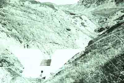 Braking structure at the opening of a deep valley. The sections made of reinforced