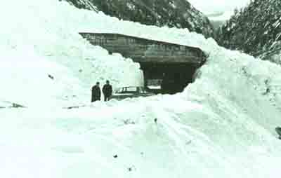 93 and 94: Tunnel through an alluvial cone used in winter by avalanches. Notice how the