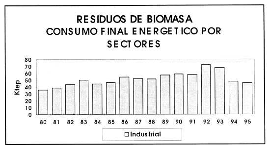 El consumo de Biomasa (cáscara de arroz, cáscara de girasol y bagazo) del año 1995, es de 84.5 ktep lo que equivale al 1.5% del consumo final energético.