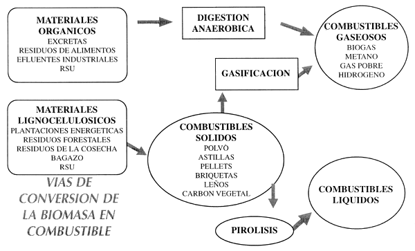 Frecuentemente se requiere de algún proceso industrial o semi-industrial para realizar esta transformación. La Fig. 1 presenta los principales caminos de transformación disponibles para convertir un desecho agropecuario en un energético.